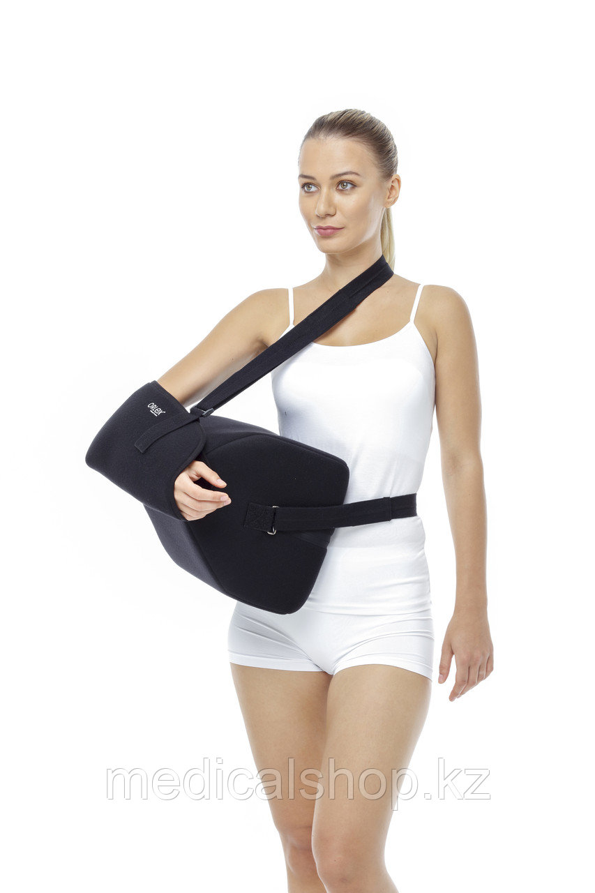 Плечевой бандаж для снятия нагрузки с плеча в исходном положении. Угол отвода руки может быть установлен на 45 или 60 градусов. Кроме того, бандаж универсален для правой и левой сторон. Подушка анатомической формы обеспечивает стойкое положение и иммобилизацию сустава.